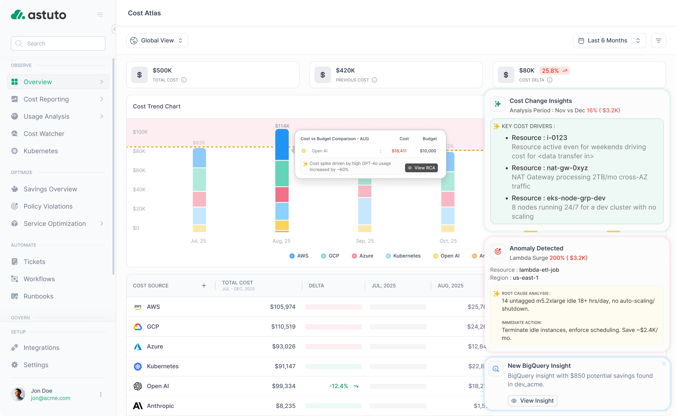 Astuto OneLens is built for Engineering, Finance, and Business teams - one platform to track, allocate, and optimize every dollar across multi-cloud, Kubernetes, and AI.